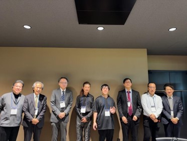 写真:左から当会奥村学術部長、京都府鍼灸師会熊野会長、加島先生、新風代表、勝倉先生、増田先生、当会竹下学術副部長、志水先生